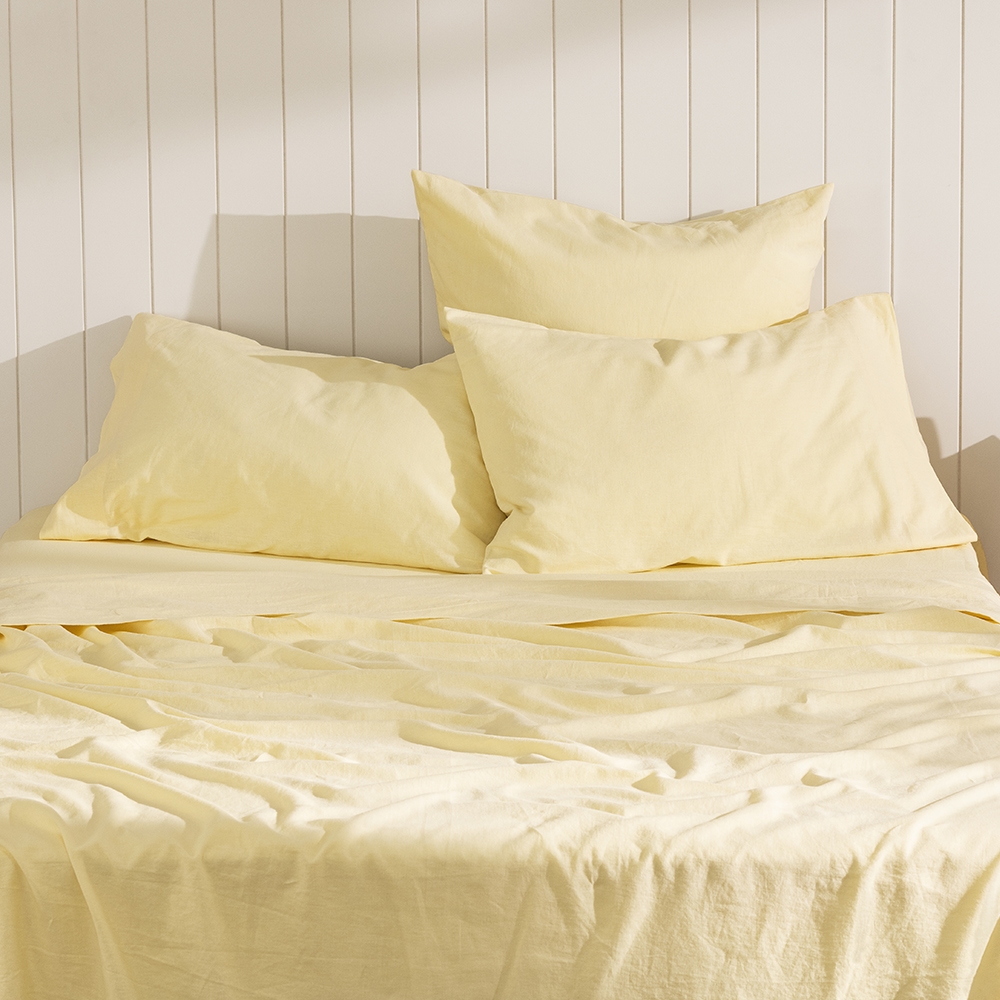 Dream provides the solid foundation to create a minimalist aesthetic or use it as your anchor pieces to accentuate high pattern quilts and pillows. This bedding collection offers a blend of European Linen and BCI Cotton in four solid colours for a classic, effortless finish. Available in a Dandelion yellow, this sunny hue brings a light, fresh outlook to your bedding.