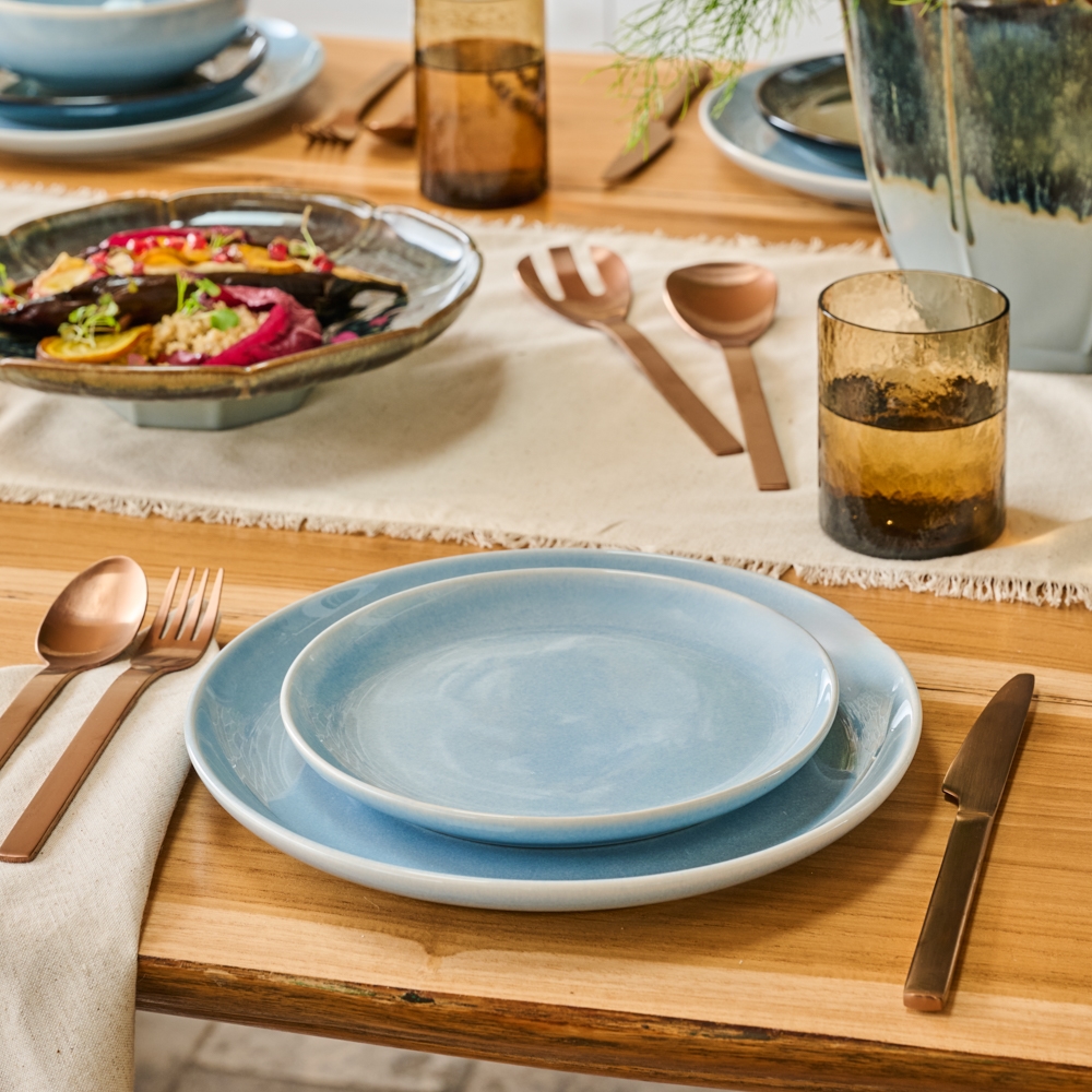 Element Sky captures the serene beauty of shifting cloudscapes. A soft, airy base is accented by delicate flecks and washes of light blue. This classic stoneware range is enhanced by a high gloss glaze and subtle tonal variations, bringing a breath of fresh air to any setting, balancing simplicity with quiet elegance.