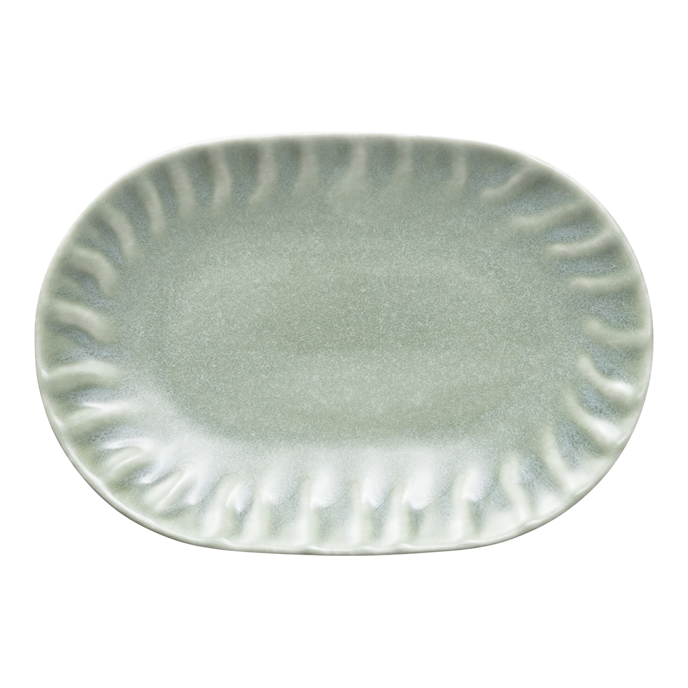 A rippled, debossed pattern traces the outer edges of the Ritual collection adding a sense of gentle movement and refined tactility. These porcelain dining and serving pieces feature a dappled reactive, gloss glaze in a calming Willow green, and a creamy Frost. Designed by Sarah Strickland, the varied pieces have been thoughtfully crafted to mix and match with ease.